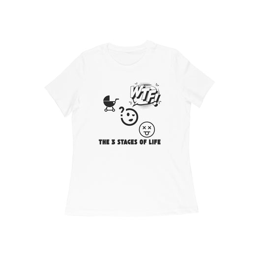 ÉpuiséT-shirt femme « Les 3 étapes de la vie : Naissance, WTF, Mort »